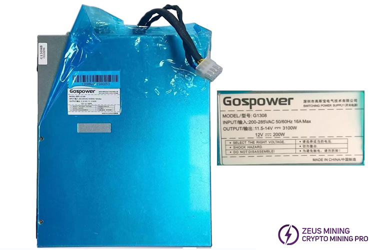 Gospower G1308 Power Supply is used to replace the faulty power supply of Ebit E12 miners. Its output voltage is 11.5-14V, and its input voltage is 220-285VAC. A good power supply can ensure the stable operation of the miner.