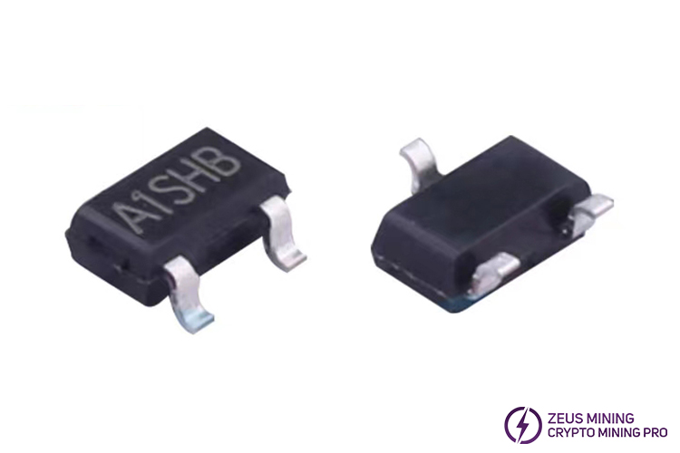 SI2301 is a P Channel 20V 2.8A MOSFET marked A1SHB on the silkscreen, located on the Whatsminer CB4-V10 control board, and its operating temperature is between -55°C and +150°C.