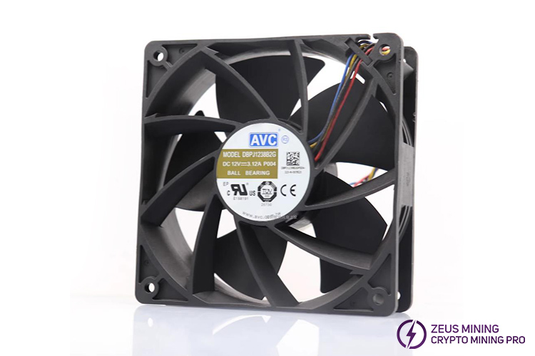 The original AVC DBPJ1238B2G 12038 12V 3.12A cooling fan adopts double ball bearings, 4-wire PWM temperature control, suitable for Avalon, Innosilicon, Ebit, Antminer, Whatsminer miner chassis cooling, provides stable airflow for miner operation, and ensures timely cooling of miners.