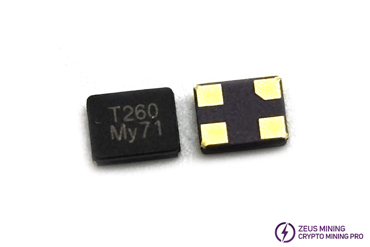7v26000012 passive SMD crystal oscillator 26MHZ 26M 3225, the product size is 3.2*2.5MM, 4P, located on the Antminer S19PRO hash board, and the silkscreen mark of the crystal oscillator is T260.