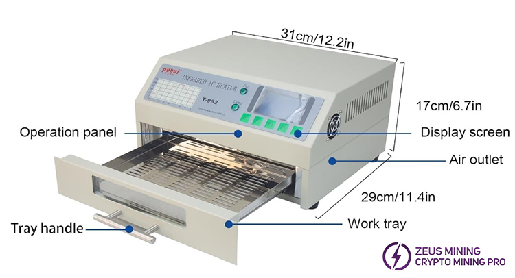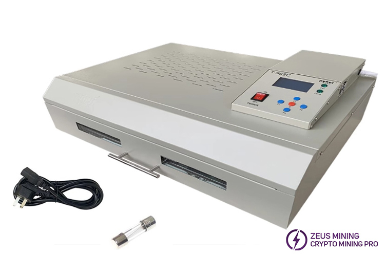Intelligent infrared reflow soldering machine T-962 series, the drawer type reflow soldering machine can meet 98% of the soldering requirements, the max soldering area is 400x600mm, the eight curves of the reflow soldering meet the non-stop soldering requirements, the original view, the temperature change is easy to observe. PID temperature control technology avoids board baking and uneven tinning and is suitable for single/double, leaded/lead-free soldering.