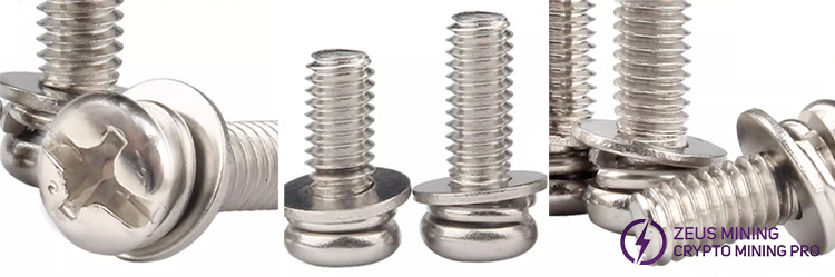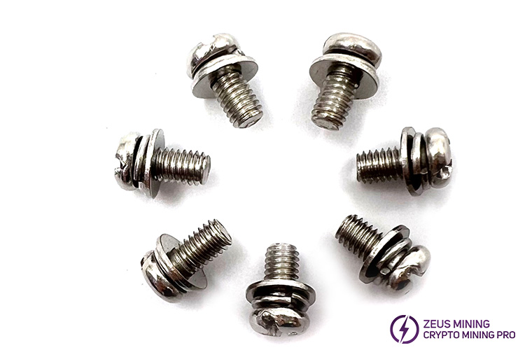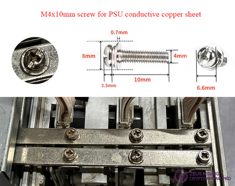 M4x10 Cross external hexagonal three combination screws are suitable for fixing the conductive copper bars of miner power supply equipment, such as Antminer PSU, Avalon PSU, Whatsminer PSU, etc. It has corrosion resistance characteristics, is not easy to rust, has no deformation, and has good toughness.