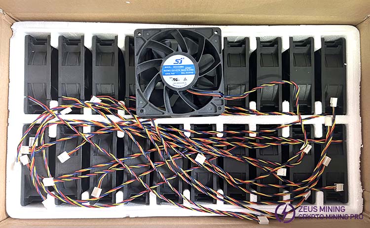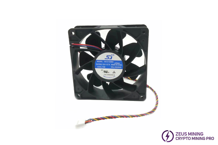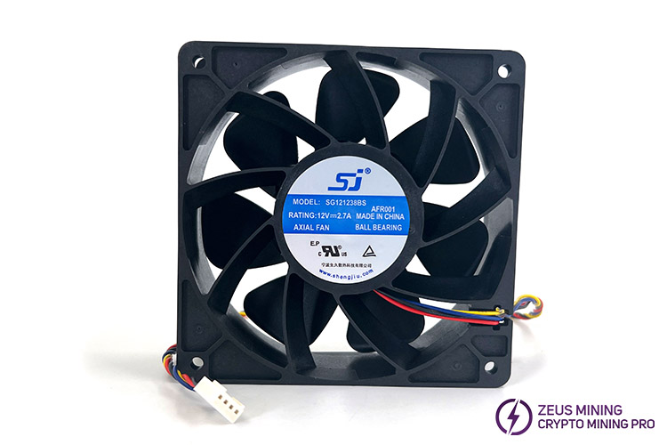 The Sj SG121238BS 12V 2.7A 4 wires cooling fan size is 120x120x38mm, the speed is 6000, and four needles adjust the speed. Applicable to Antminer L3+, s7, s9i, s11, A3, ElphaPex DG1, DG1+, etc. Rated voltage 12V, current 2.7A. The air volume is 210.38CFM, the wind pressure is 21.60mmH2O, and the noise is 64dB-A. Maintenance-free double ball bearings have a long service life and have sufficient cooling air volume and wind pressure.