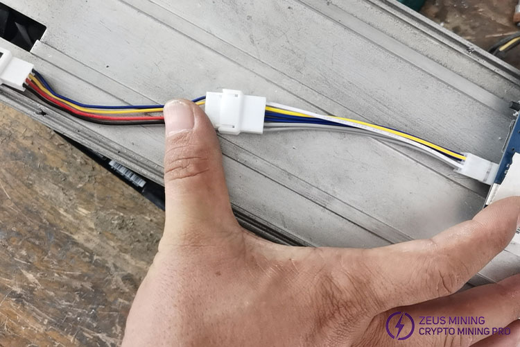 In this process, two fan adapter cables are needed; the 4Pin interface of the fan adapter cable is connected to the 4Pin fan, the other end is connected to the Whatsminer fan adapter cable, and then the Whatsminer control board is connected to ensure the smooth connection of the 4Pin fan to the Whatsminer control board.