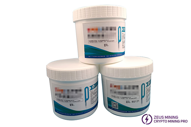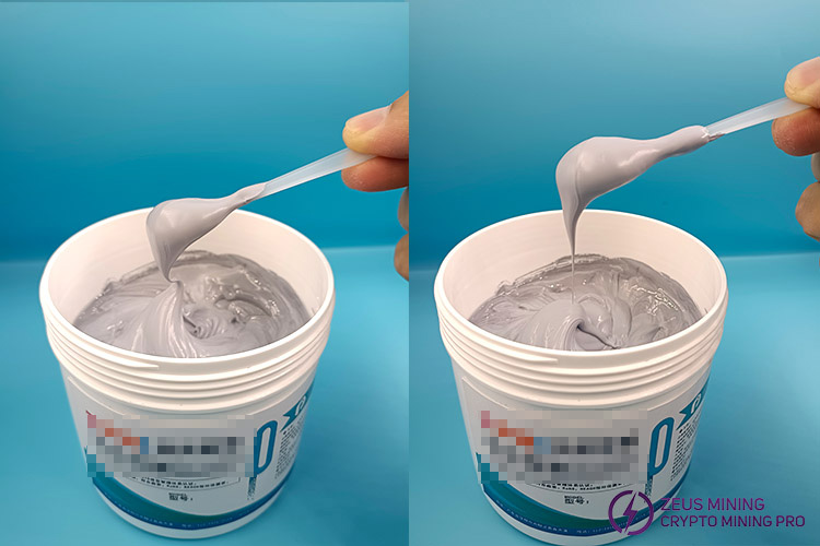 Heat-conducting silicone grease with a coefficient of 5W/mk can help chips, power modules, heat sinks, etc., to cool down quickly and achieve effective heat dissipation. The thermal compound fills the gap between the ASIC chip and the heat sink so that the heat dissipated can be transferred more quickly. It has the characteristics of cold resistance, high-temperature resistance, good insulation performance, fast cooling speed, and wide working temperature. To ensure the performance of the thermal grease, it is recommended to reapply it after half a year of use to prevent chip performance degradation and failure to dissipate heat caused by the drying of the thermal grease.