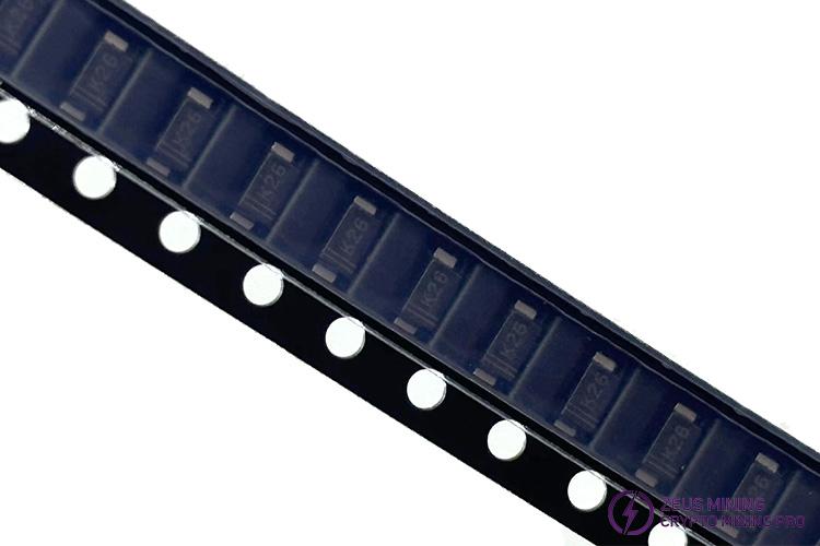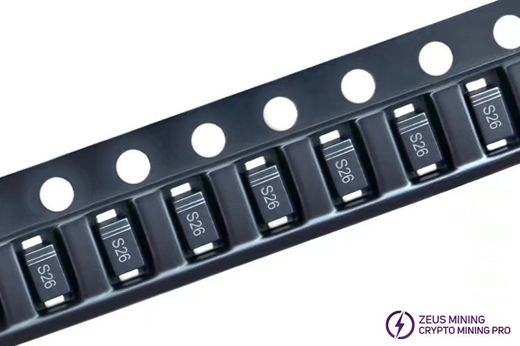 DS26W is a 1206 SMD Schottky diode marked S26 on the silk screen. It is located on the Whatsminer M30 hash board. Its voltage and current are 2A 60V, packaged in SOD-123FL. It is often used to replace faulty components to ensure the regular operation of the hash board.