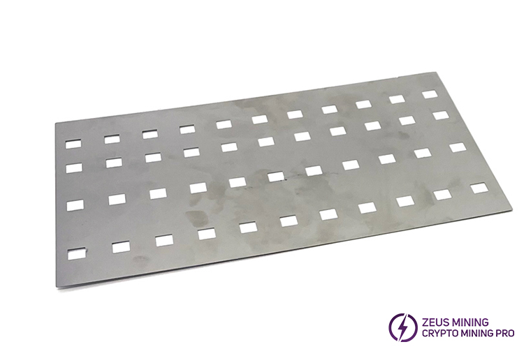 2. Place the positioning plate steel mesh on the T17+ hash board and clean the chips with sandpaper to ensure the entire board is clean.