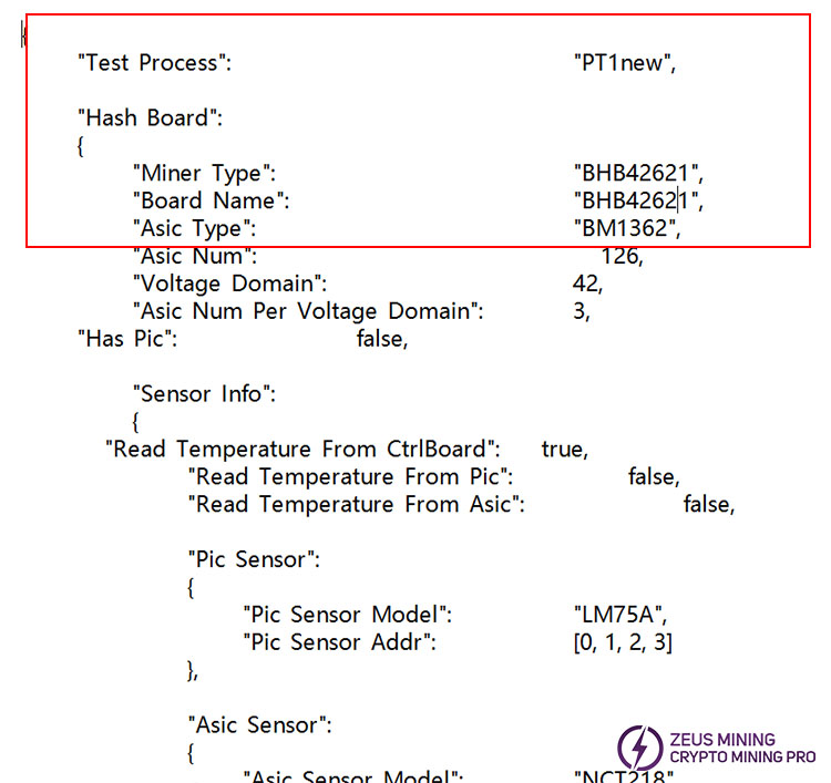 Antminer S19j Pro+ hash board test file BHB42612 version