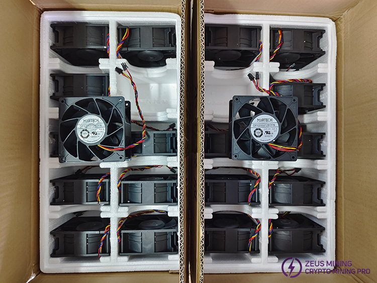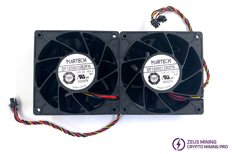 Avalon 1346 fan 12V 8.0A DF1205012B2FN dual cooling fan version uses two fan interfaces. The fan size is 120x120x50mm. It is a high-speed, violent cooling fan that meets the heat dissipation problem of the A1346 A1466 A1566 miner and extends the service life of the miner.