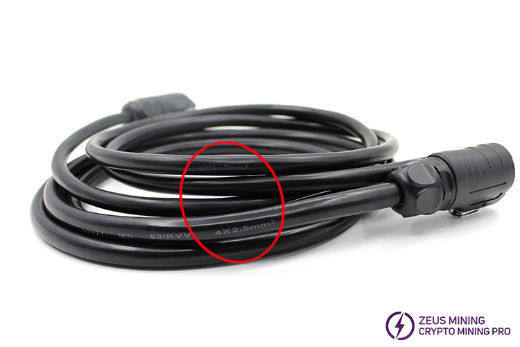 This 4x2.5mm² power cord is specially designed for Antminer 6000W+ Hydro mining rigs but is also suitable for 5000W+ Hydro mining rigs. The 2.5mm² power cord ensures that the operation of the miner can be more stable.