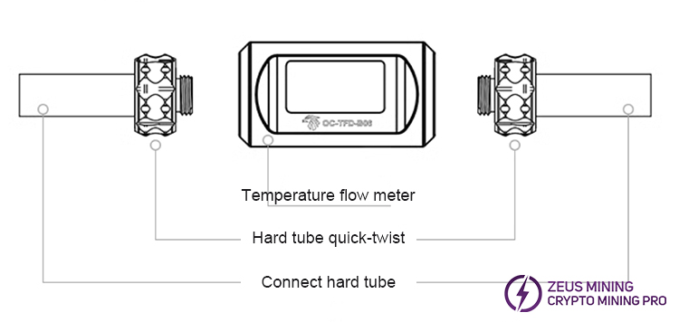 One end connects the water-cold miner, and the other is connected to the radiator; it is used to detect the water temperature and flow of water-cold miners and radiators.