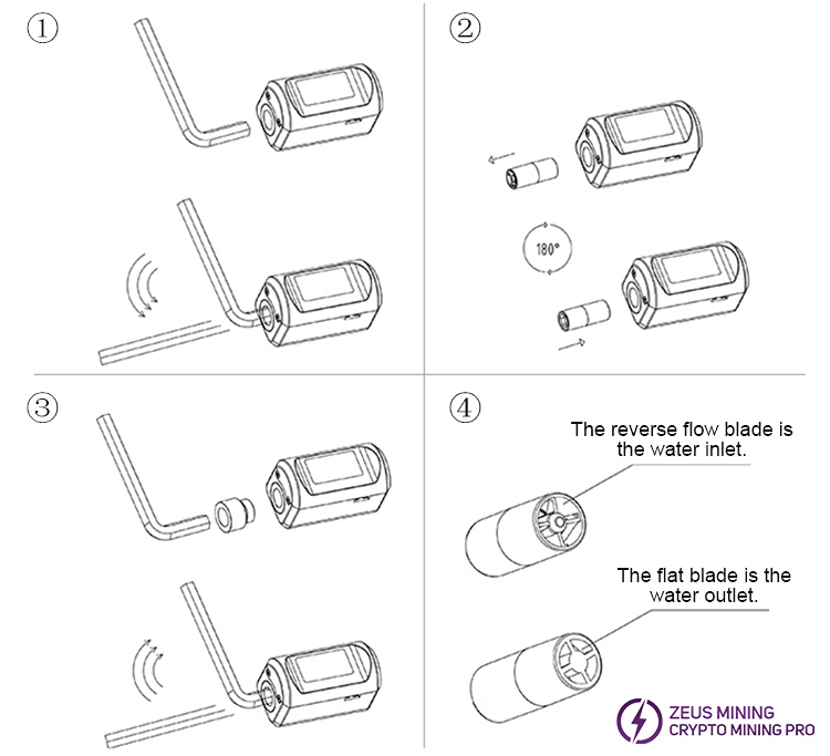 2. Take out the internal rotor, turn it 180° and reinstall it;