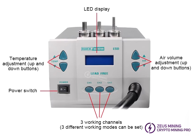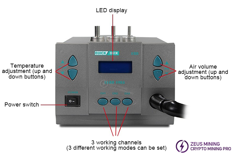 1. It has three working channels, CH1, CH2, and CH3, and the air volume and temperature of each channel can be set.