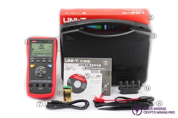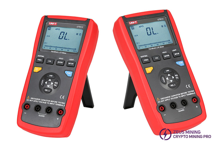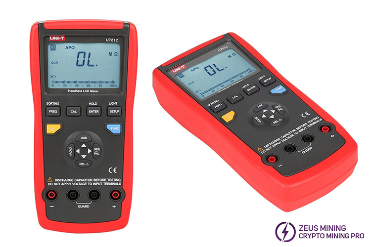 UNI-T UT612 digital bridge meter is a handheld automatic range LCR digital bridge meter with stable performance, safety, and reliability. It is an instrument used to measuring inductance, capacitance, and resistance for ASIC miner hash board / control board / power supply. It has the characteristics of low power consumption, high measurement accuracy, and fast speed. Series and parallel measurement mode selection, measuring component quality factor, loss, phase angle, equivalent resistance measurement, and DC resistance measurement. It can provide up to 5 measurement frequencies in inductance, capacitance, and resistance AC mode, which can better meet the actual needs of users.