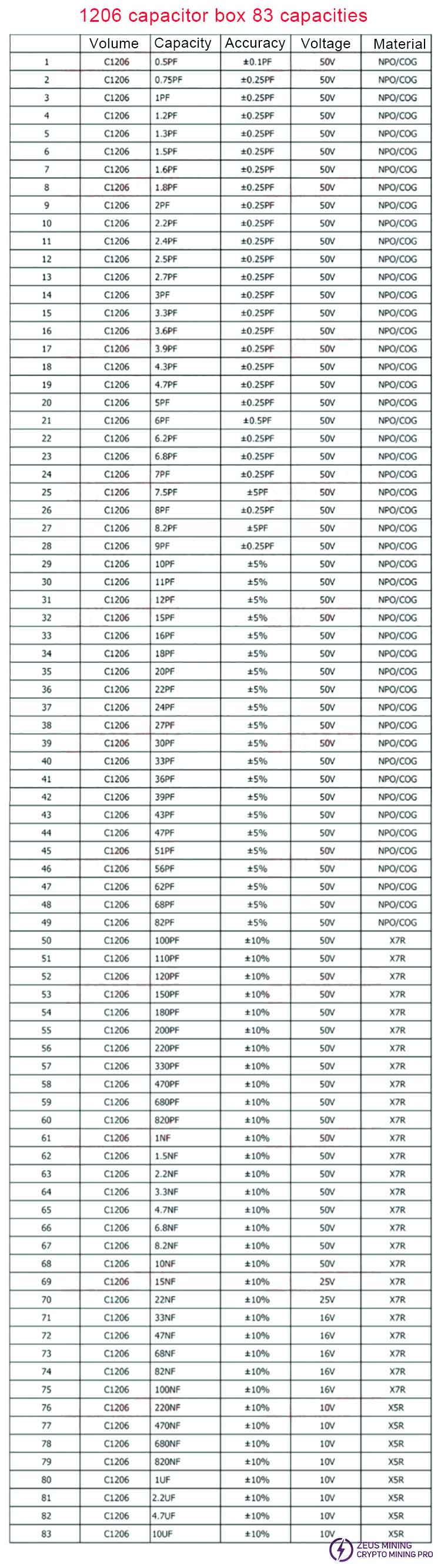 1206 capacitor box contains 83 types of capacitors with different resistance values, 100 pieces each.