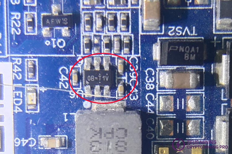 The RT6212A 2A, 18V, 500kHz is a high-efficiency, monolithic synchronous step-down DC-DC converter located on the Avalon A850 control board, delivering up to 2A output current from a 4.5V to 18V input supply. Its silk screen mark is 0B=*** and uses ACOT architecture to improve transient response and maintain a constant frequency. Cycle-by-cycle current limiting prevents output short circuits, and soft-start eliminates input current surges during startup. Its functions also include output under-voltage protection, output over-current protection and thermal shutdown.