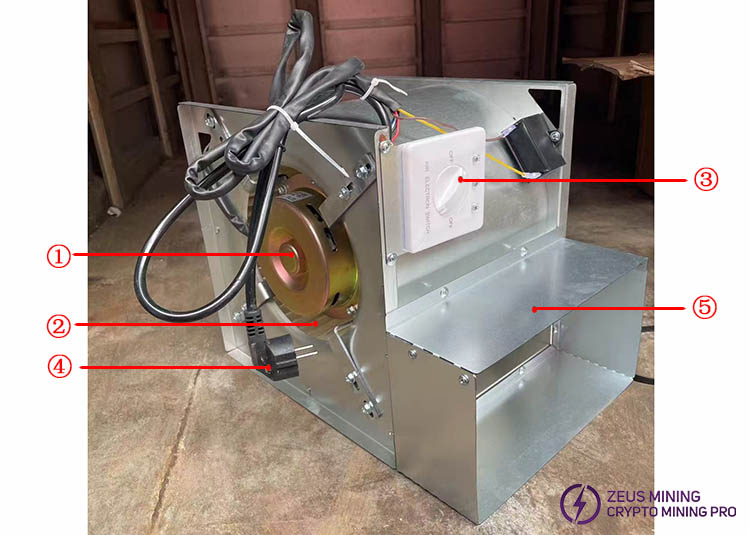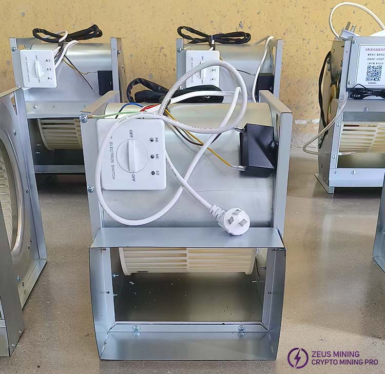 The shell of the standard version / temperature control version / wifi version silencer is made of aluminum, with a high-power brushless AC motor inside, and a 3 speed (standard version) or 4 speed (temperature control version / wifi version) adjustable speed controller to freely control the fan speed to meet the needs of different miners.