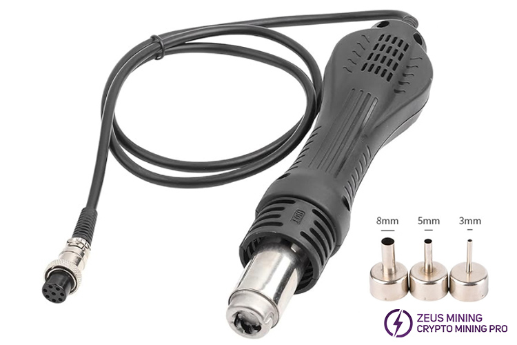 858 878 series hot air gun desoldering station two-in-one air gun handle is made of high-temperature resistant material, which effectively isolates the heated object and reduces the risk of burns. The exterior is made of anti-static material to dissipate static electricity. The anti-slip handle is comfortable to hold and suitable for long-term maintenance operations. Brushless vortex fan, balanced air output, rapid heating, suitable for 858, 858D, 8858, 8586, 8786D, and other desoldering stations.