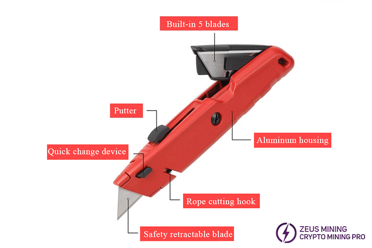 1. Anti-slip grip; ergonomic grip, when you need to quickly cut PVC or cartons, but your palms are sweaty, then there are anti-skid lines on the bottom of the all-metal grip to allow you to hold it firmly Utility knife.