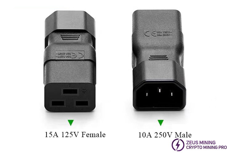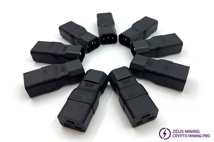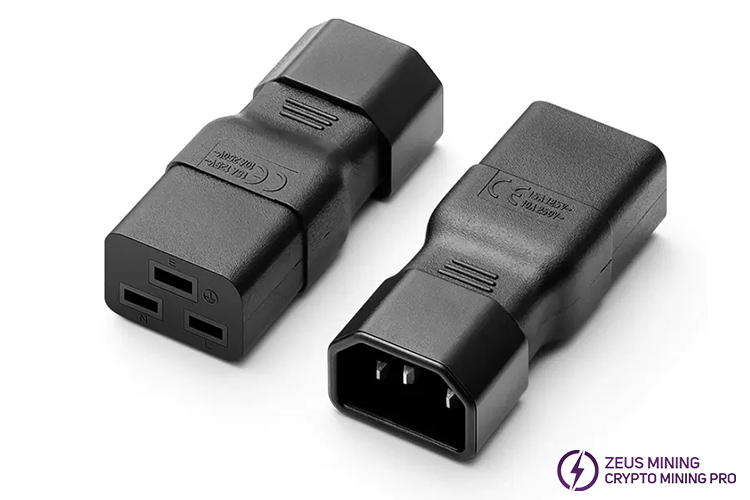 The C14 to C19 PDU power conversion plug is suitable for Whatsminer M20S, M21S, M30S, M31S, M32S, M50 series miners. One-piece design, smooth plugging and unplugging, tight combination, strong toughness, long-lasting stability, and safer electricity use.