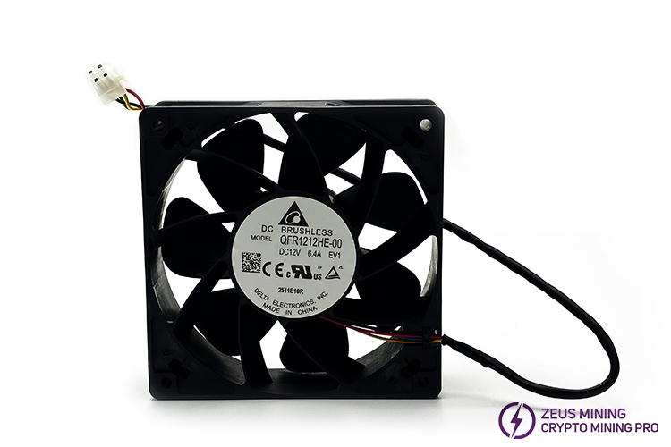 Original QFR1212HE-00 12V 6.4A 120mm cooling fan is used to replace the Antminer S21, T21, KS5, KS5pro ,S19jXP, S19kpro chassis fan. It has the strong wind power to ensure sufficient heat dissipation of the miner. High-quality copper core, maintenance-free double ball bearings, long service life.