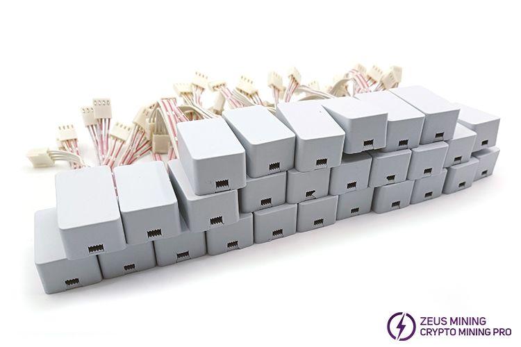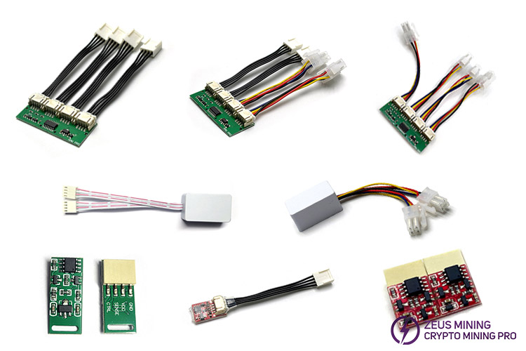 Antminer fan spoofer is a device that tricks ASIC miners into running properly without high-speed fans, thus achieving a more efficient cooling method. This speed controller is usually used to upgrade Antminer air-cooled miners to water-cooled / oil cooled miners or to install a muffler for the miner. Its types include 4 in 1 speed simulators, 2 in 1 speed simulators and single-plug speed simulator.