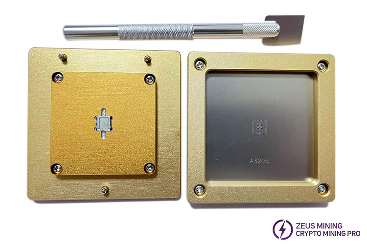 Avalon A3205 chip tin tool is used to help with the replacement and tin plating of Avalon A1066, A1046, and A1047 hash board ASIC chips. It is made of electricity-resistant and high-temperature resistant composite material, which is more durable than alloy materials. During the process of replacing the chip, it can effectively prevent the generation of charges and protect the chip. The steel mesh is made of high-quality materials, with precise positioning, high temperature resistance, and no deformation.