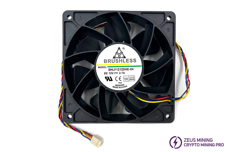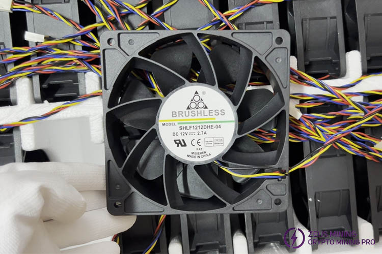 SHLF1212DHE-04 12V 2.7A cooling fan is suitable for replacing failed chassis fans of Antminer S17 and S19 series. The chassis fan uses double ball bearings, the fan speed is as high as 6000RPM, and its air volume is 210.38CFM, with good heat dissipation performance, strong wind power, and long service life.
