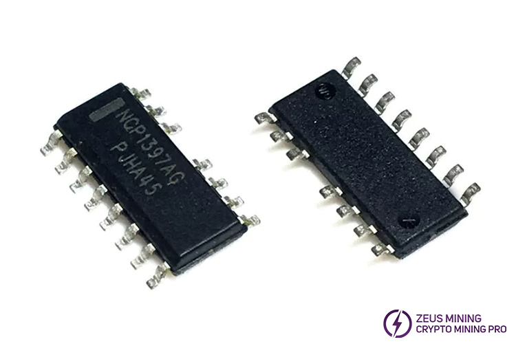 NCP1397AG is a high-performance controller on the loveminer A1 PSU TT240015P-YTJ that can be used in half-bridge resonant topologies such as series, parallel, and LLC resonant converters. It integrates a 600V gate driver, simplifying layout and reducing external component count. Its controller features include automatic recovery or fault latch, brown−out, optocoupler open, soft-start, and short-circuit protection.