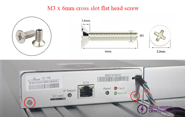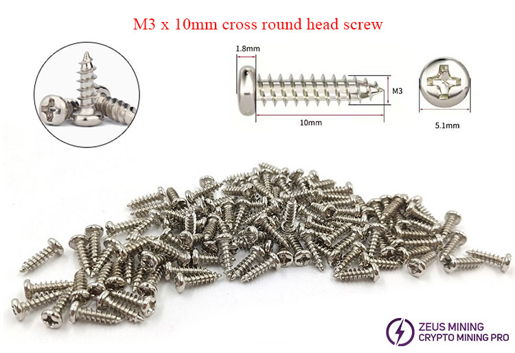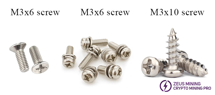 Antminer M3x6mm M3x10mm screws are used to fix the cover of the miner control board to protect it from dust, particles, etc. The top of the screw is made of nickel-plated cross countersunk, selected high-quality carbon steel, sturdy and durable, smooth and burr-free.