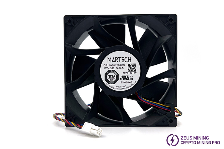 Martech DF1403812B2FN 12VDC 5A 140mm x 140mm x 38mm cooling fan is used to replace the damaged case fan of Antminer S21XP, S21pro, S21+. When the fan is under high load for a long time, it may cause untimely heat dissipation and substandard fan speed. Timely replacement of the faulty fan can help miners dissipate heat normally. The fan adopts maintenance-free double ball bearings, with sufficient and stable air volume, and is strong and durable.