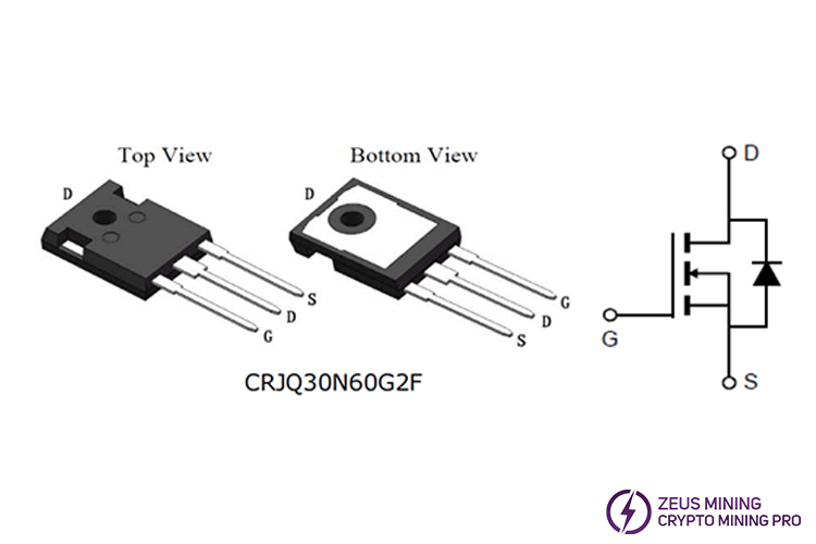 CRJQ30N60G2F 600V 28mΩ 83A N-channel power MOSFET replaces the failed components of an ASIC miner power supply. It uses CRM CQ super junction technology, lower Ron*A performance, and lower FOM for fast switching efficiency.