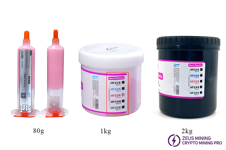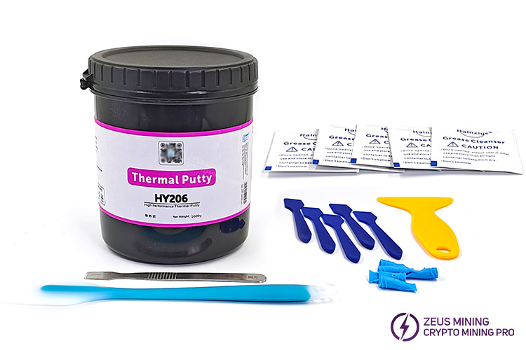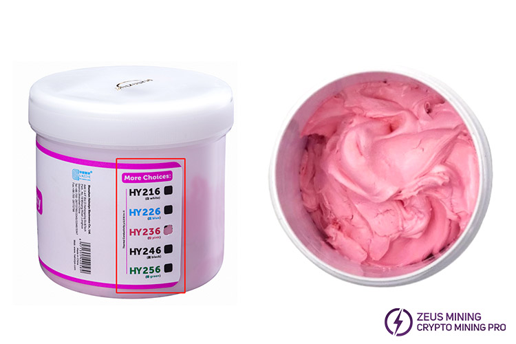 HY206 HY236 thermal paste is a new type of thermal interface material with a better fit and softer texture. It can perfectly replace thermal pads and is mainly used to fill the gap between the radiator on the Antminer, Whatsminer, Iceriver, Avalon hash board and the ASIC chip to ensure better thermal conductivity. This thermal paste is specially designed to suppress high temperatures, has better thermal conductivity, does not solidify, is very convenient to maintain, does not stick to the hands, and is easier to clean.