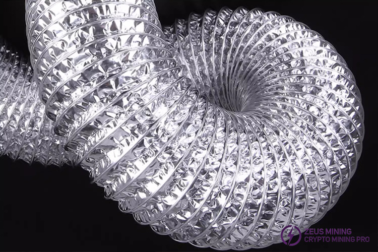 The aluminum foil hose is designed to exhaust hot air from the miner's silencer. The inner diameter of the pipe is 120mm and 200mm, and the matching metal clip is used to fix the pipe. This eliminates the accumulation of environmental heat and effectively reduces the miner's operation's noise.