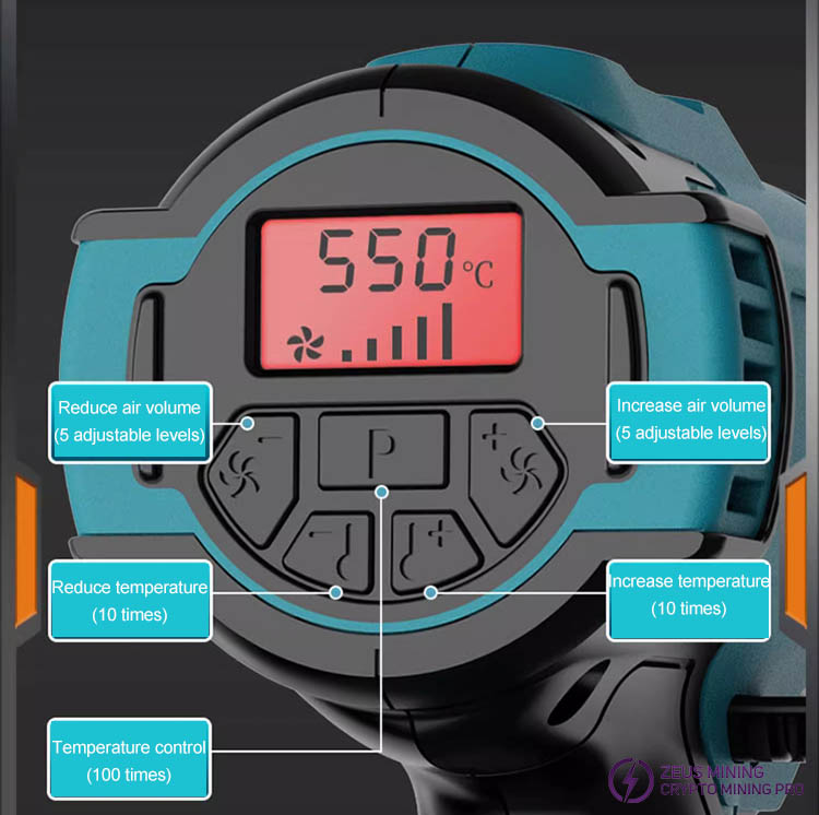 1. High-definition digital display screen; smart panel + button temperature adjustment, smart chip temperature intelligent control 50~550°C can be doubled temperature adjustment, work more efficiently.