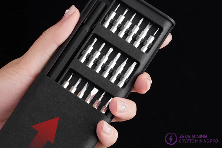 1. The screwdriver bits are precisely matched and have a wider range of applications, including 24 widely used fine-finished screwdriver bits, which are very suitable for various repair applications, such as ASIC miner hash board, chassis, power supply, etc. disassembly or repair;