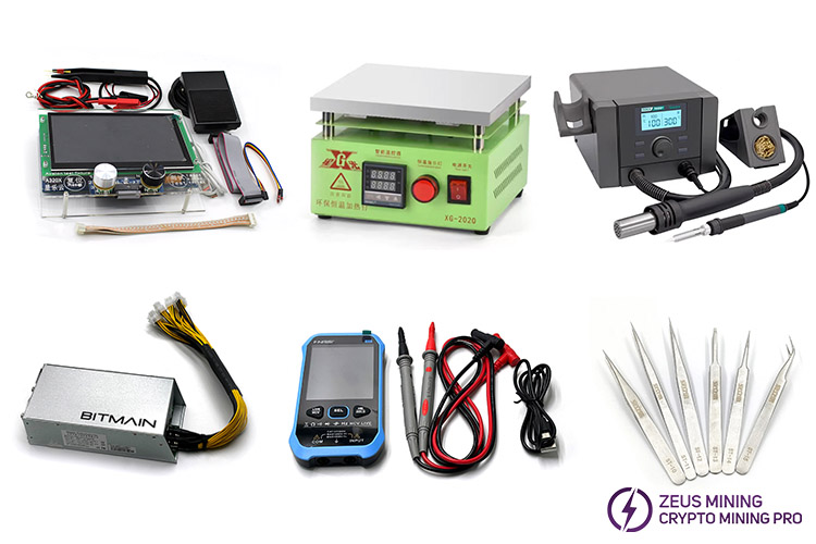 Based on the repair experience of Avalonminer hash boards, ZEUSMINING has compiled a complete set of repair tools suitable for Avalon miner faulty hash boards. It includes an A320X test fixture, 200x200mm preheating platform, 709D+ desoldering station, APW3++ power supply, FNIRSI-S1 multimeter, and repair tweezers. This set of repair tools can meet the repair needs of Avalonminer faulty hash boards. Applicable hash board models include A1446, A1466, A1346, A1366, A1326, A1246, A1146, A1146pro, A1166pro, A1056, A1066, A1047, etc.