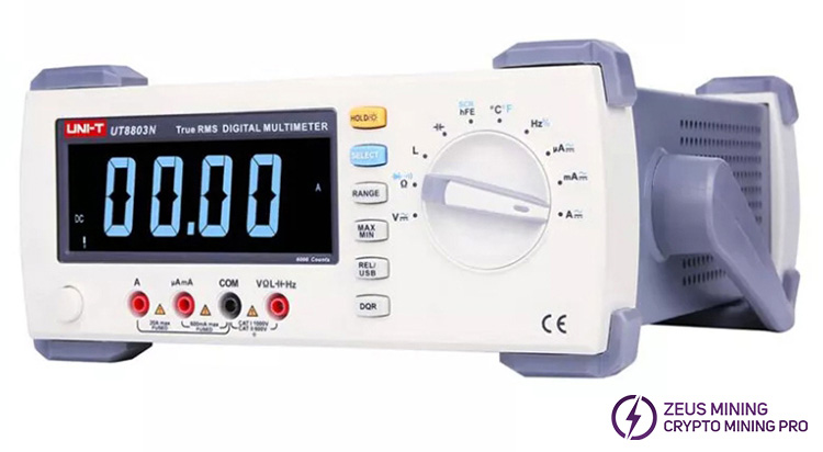 UT8803N benchtop digital multimeter is a 5999 count, 3 5/6 digit auto-range true RMS benchtop digital multimeter. It has a large screen with a backlight, an extraordinarily large character display, full function, complete range overload protection, and a unique design, making it an excellent electrical measuring instrument. This meter can measure AC and DC voltage, AC and DC, resistance, frequency, capacitance, inductance, transistor hFE, diode (LED), thyristor (SCR), and buzzer circuits on and off. It is an essential experimental tool for major miners to repair.