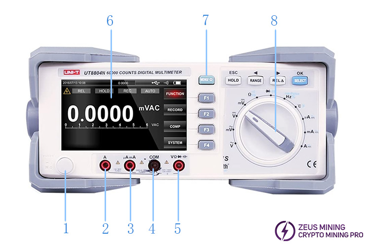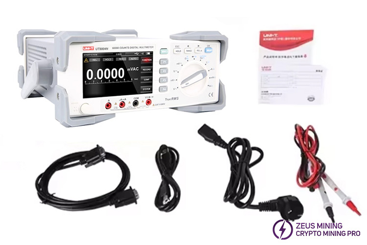 UT8804N is a 59999 count, 4 5/6 digit automatic range, true RMS benchtop digital multimeter with a 100kHz frequency response, providing a multi-level, all-round clear display of measurement results and graphical display with both readings and trend charts so that the measurement results can be seen at a glance. The circuit design of the whole machine adopts large-scale integrated circuit A/D analog-to-digital conversion technology, microprocessor technology, multi-function measurement technology, and high-stability thin film resistor manufacturing technology, making it a digital multimeter with superior performance. It can be used to measure parameters such as AC and DC voltage, AC and DC, resistance, conductivity, diode, circuit on/off, capacitance, temperature, frequency, pulse width, etc., and has data retention, maximum/minimum/average measurement, comparison function measurement, relative value measurement, peak detection, trend chart capture, and up to 20,000 data records/readback functions.