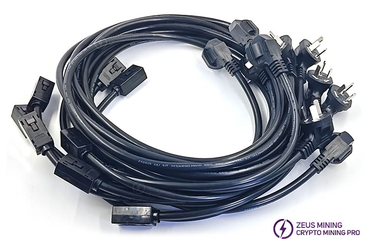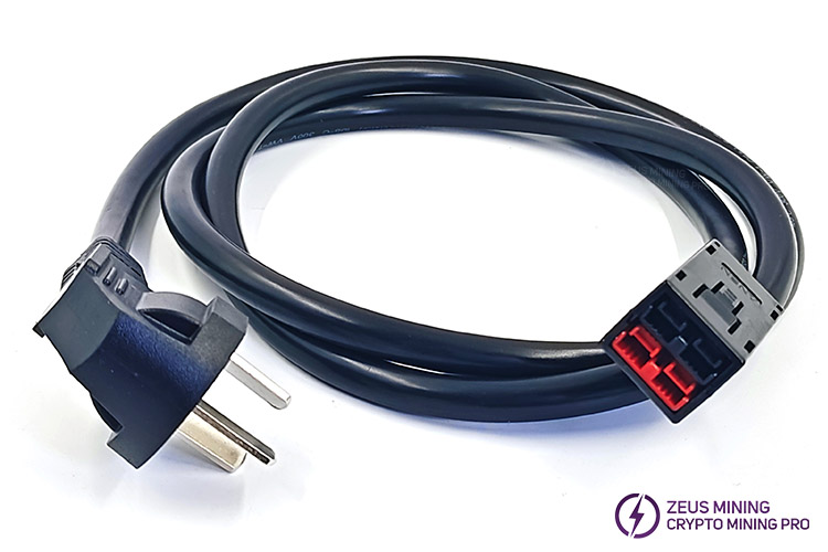 This SA2-30 power cord power cable is designed for Whatsminer air-cooled miner power supply P231B P232B with an input voltage of 220V-277V. Applicable machine models include M61S+, M61S, M61, M60S, M60, M50, M32, M31S, M30S++, M30S+, M30S, M30, M20 and other air-cooled miners. The power cord has a wire diameter of 2.5mm², a three-core thick wire core, and a cable length of 1.5M to ensure that the miner provides normal power during high-voltage operation. The power cord supports conventional plugs such as CN, US, UK, EU, and C20, as well as other customized plugs.