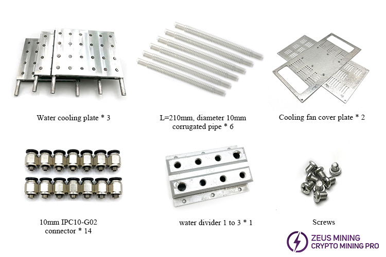 For purchasing the Bluestar L1 water cooling system retrofit kit (with 12.8KW radiator), you will receive not only the water cooling plate but also the following products: