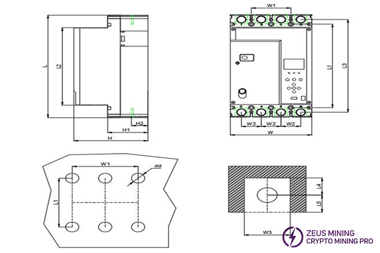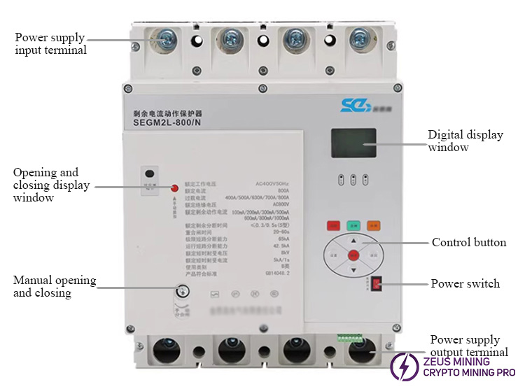 M2L series 630A 800A residual current protection circuit breaker is suitable for a three-phase four-wire neutral point direct grounding (TT) distribution network with AC 50Hz, rated voltage 400V, and rated current 252A to 800A. It is used to provide indirect contact protection against personal electric shock hazards, and can also protect lines and electrical equipment. New upgraded LCD display with remote communication. This product has overload protection, short circuit protection, overvoltage protection, undervoltage protection, phase loss protection, phase error protection, zero break protection, surge protection, automatic reclosing, and communication functions. It is widely used in ASIC miner mining farms, power, and other industries.