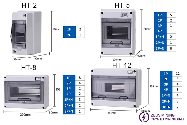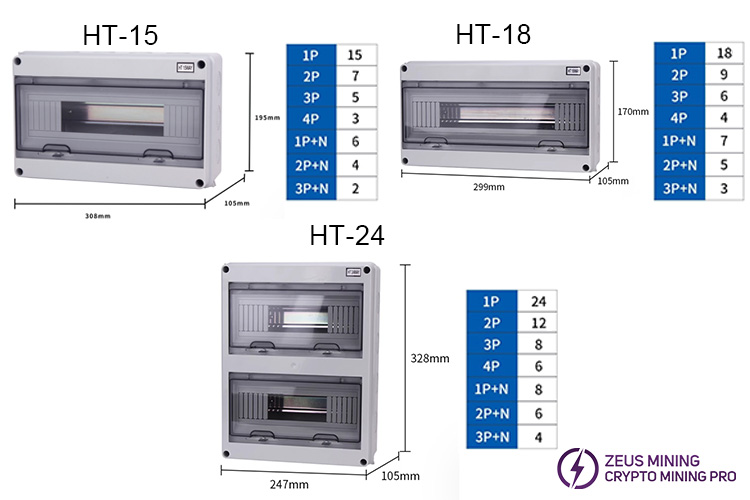 HT series distribution box household outdoor air switch box small circuit breaker box can effectively block splashing water, rain, dust, snow, oil, ultraviolet rays, etc. It can effectively protect the mining farm internal circuit breaker, with a protection level of IP65.