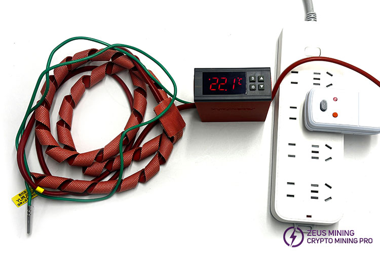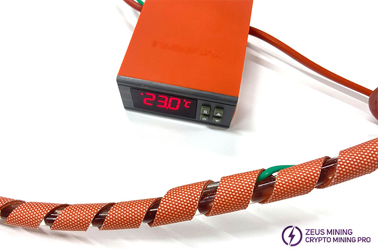 When we check the miner kernel log and find that the coolant temperature in the water pipe of the original Antminer Hydro miner is lower than 20℃, the miner will not be able to operate normally. The heating belt can accurately control the water temperature of the water cooling pipe to above 20℃, so the Antminer Hydro miner can reach the original optimal operating state.