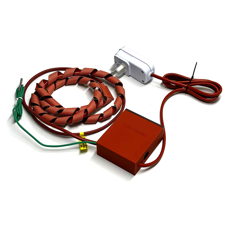 The heating tape should be evenly wound around the pipe without crossing or overlapping. The thermostat's temperature probe should be placed close between the heating belt and the water cooling pipe.