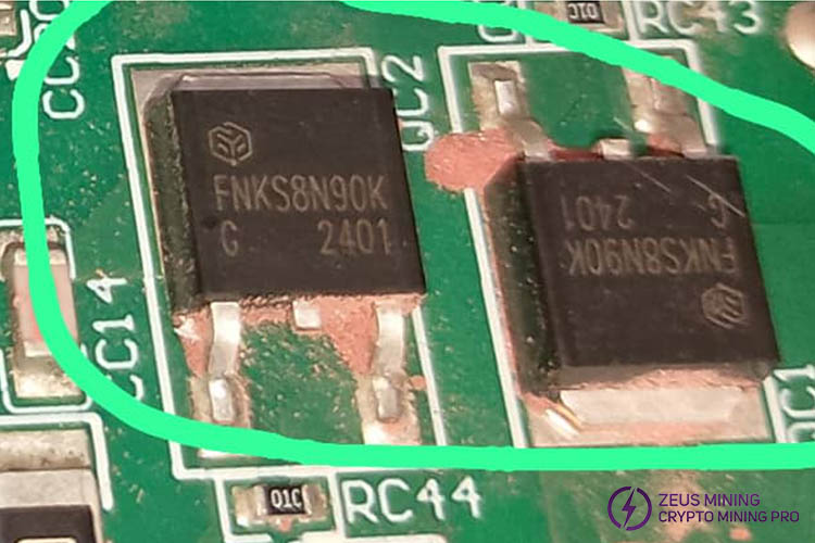 FNKS8N90K MOS tube SMD, in TO-252 package, is used to replace vulnerable parts on the Bitmain Antminer Hydro miner APW11 power supply. By replacing the faulty FNKS8N90K components on time, the power supply can resume normal operation and reduce losses caused by downtime.