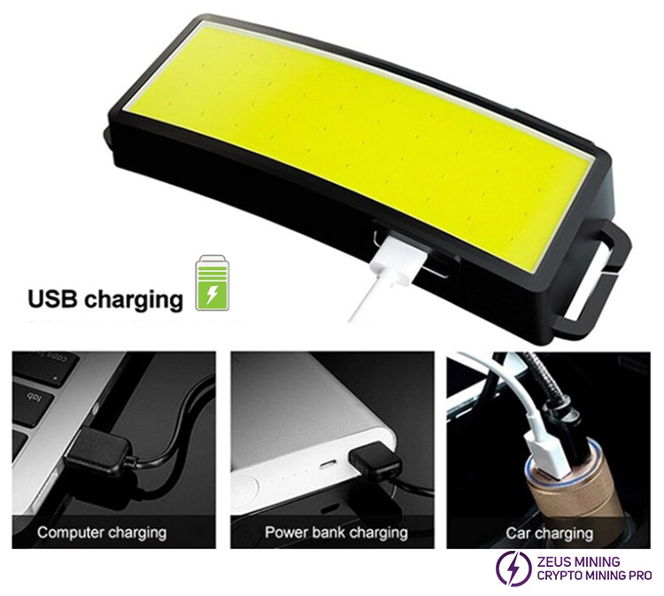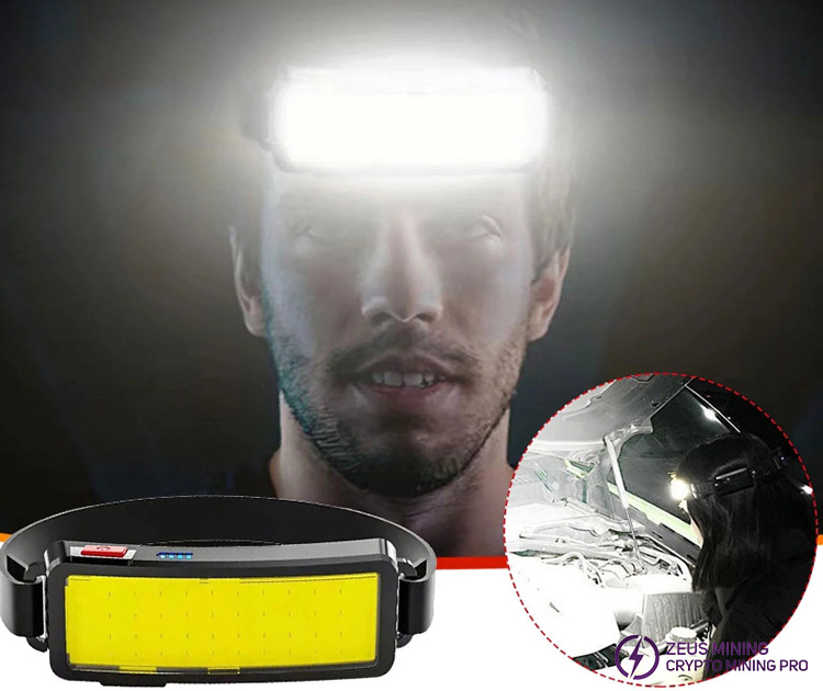 COB full-view floodlight rechargeable headlamp, built-in 40 COB lamp beads, three-speed brightness switching, with small size, large luminous area, wide light coverage, long-lasting battery life, etc., suitable for warehouse, mining farm maintenance, deployment, etc.
