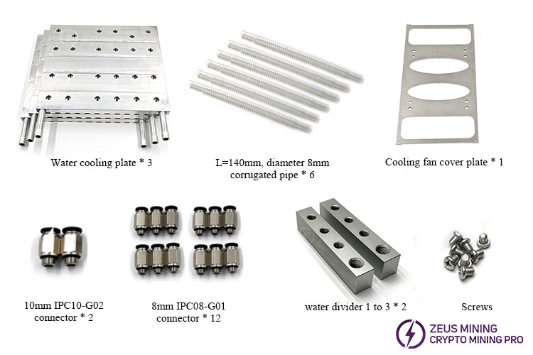 For purchasing the S21pro water cooling system retrofit kit (with 12.8KW radiator), you will receive not only the water cooling plate but also the following products: