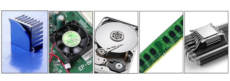 CPU, GPU cooling, memory stick, hard drive, chipset and particle cooling.