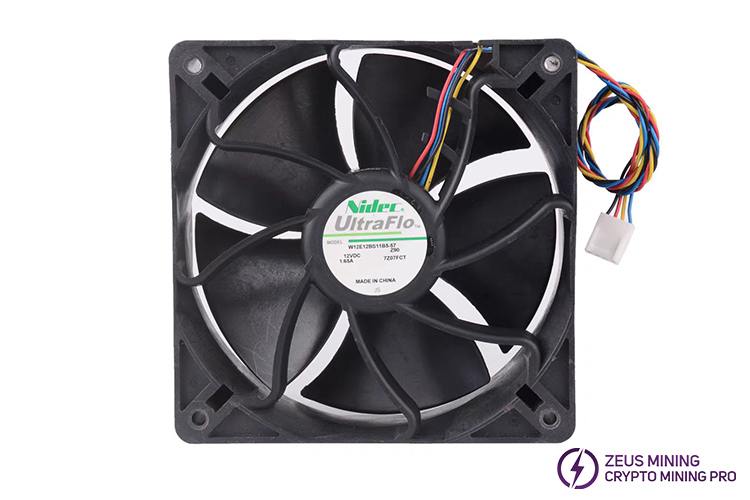 Antminer Nidec cooler fan dimensions is 120mm x 120mm x 38mm 12V, which can be used at Antminer S21, T21, KS5, KS5PRO, S19jxp, S19kpro, S19XP, S19jpro, S19pro, S19a, HS3, KS3, KA3, D7, L7, K7, S19, V9, S9, S9J, S9K, S9SE, S11, S15, S17, S17Pro, S17+, T17, T17E, etc. ASIC miners.